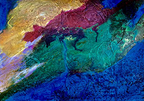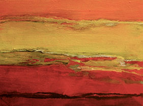 Oil is lush and sensuous, and allows me lots of time to experiment with colour, texture and mood. Acrylic is always in a rush! I love using it on non-absorbent surfaces like metal and foil, where it challenges me constantly to outwit it. |