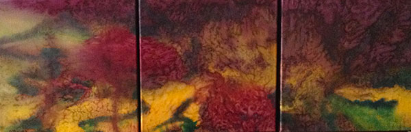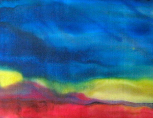 Painting on silk is another way for me to explore my love of experimentation. Traditional silk dyes provide brilliant pure colours that mingle and blend in totally unpredictable ways. I’ve also combined silk dyes with acrylics, changing the ultimate texture and feel of the painting, and presenting another new and challenging path to follow.